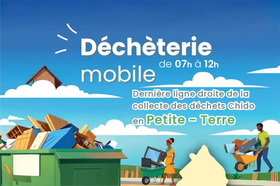 La Communauté de Communes de Petite-Terre annonce la tenue de la seconde et dernière déchèterie mobile du mois de janvier 2026 ce week-end à Pamandzi. L’opération se déroulera le samedi 31 janvier, de 7h à 12h, sur la place de la Grande Mosquée du Vendredi.