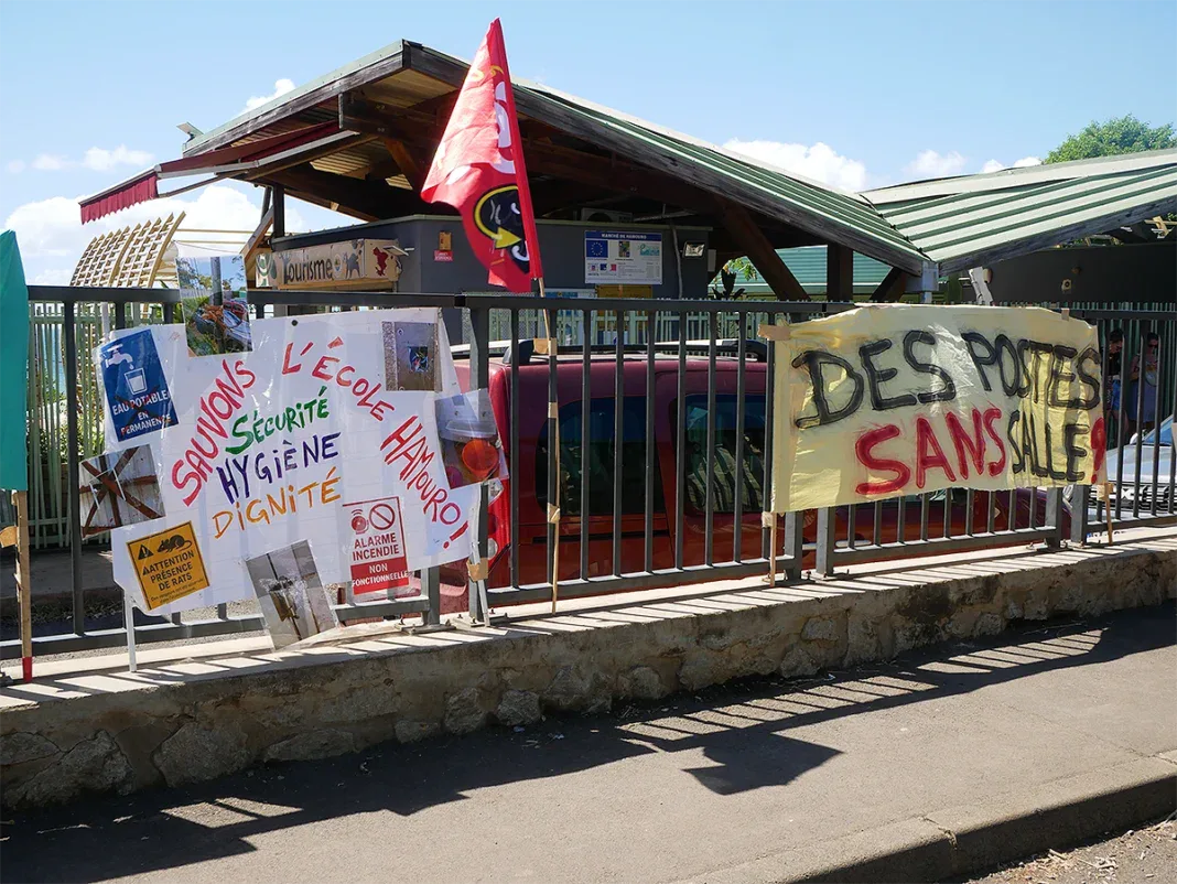 « Maîtresse, j’ai peur d’aller aux toilettes ». Cette phrase est rapportée par une enseignante de Doujani. Depuis trois jours, un mouvement de grève des enseignants touche Mayotte, notamment dans le premier degré. Au premier jour du mouvement, près d’un tiers d’entre eux (33 %) étaient grévistes. Ce jeudi 23 avril, une vingtaine d’enseignants se sont mobilisés devant l’école maternelle et primaire d’Hamouro, à Bandrélé, un cas « emblématique » de la situation sur l’île selon le syndicat CGT Éduc’action, organisateur du mouvement.
