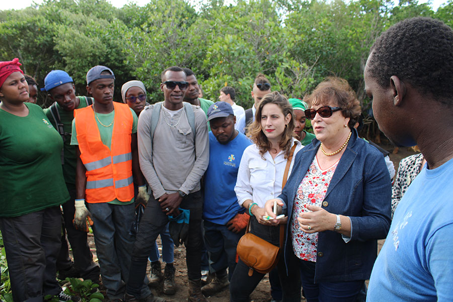 Quelques minutes plus tôt, les deux sénatrices étaient pourtant plus enjouées sur le sable de la mangrove de Majicavo. Autour d’eux, une foule de jeunes visages, des salariés de Nayma, ramasse les morceaux de tissus coincés dans les racines. « Vous les recrutez comment ? » s’enquiert la sénatrice réunionnaise. « Pôle emploi, Croix rouge, mission locale », énumère Emmanuelle Martin, tandis que les sacs poubelles s’entassent peu à peu. Sur ce lieu nettoyé pourtant trois fois par semaine, près de 1.000 sacs de 100 litres ont été ramassés récemment en une seule journée. Malgré le retour à chaque fois des déchets via la rivière, la marée ou même par des dépôts sauvages, les salariés en insertion continuent leurs efforts comme si tout était normal. « On est la génération du plastique », s’excuse Viviane Malet, en tenant un sachet de lessive fréquemment retrouvé sur place. « On est la génération qui prend les choses en main », lui répond une jeune femme de 18 ans.